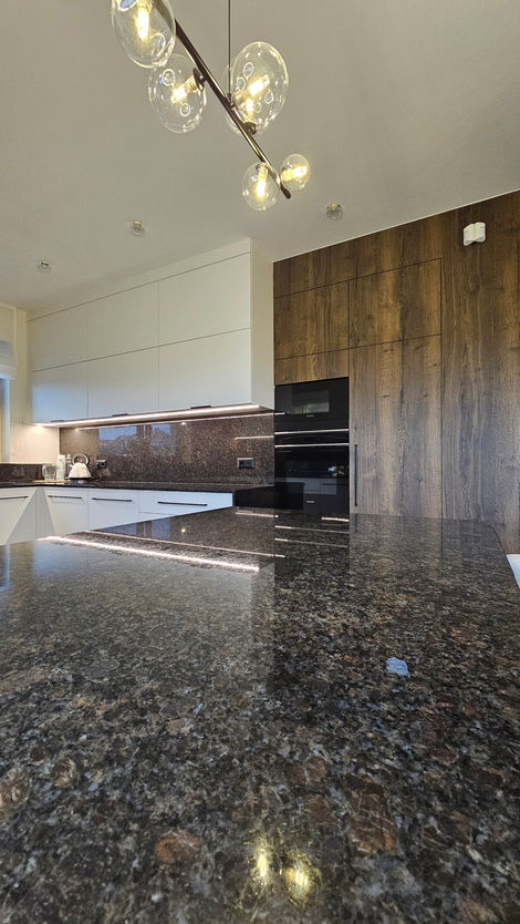 Blaty oraz okładziny wykonane zostały z naturalnego granitu, który zachwyca trwałością i ponadczasowym wyglądem.